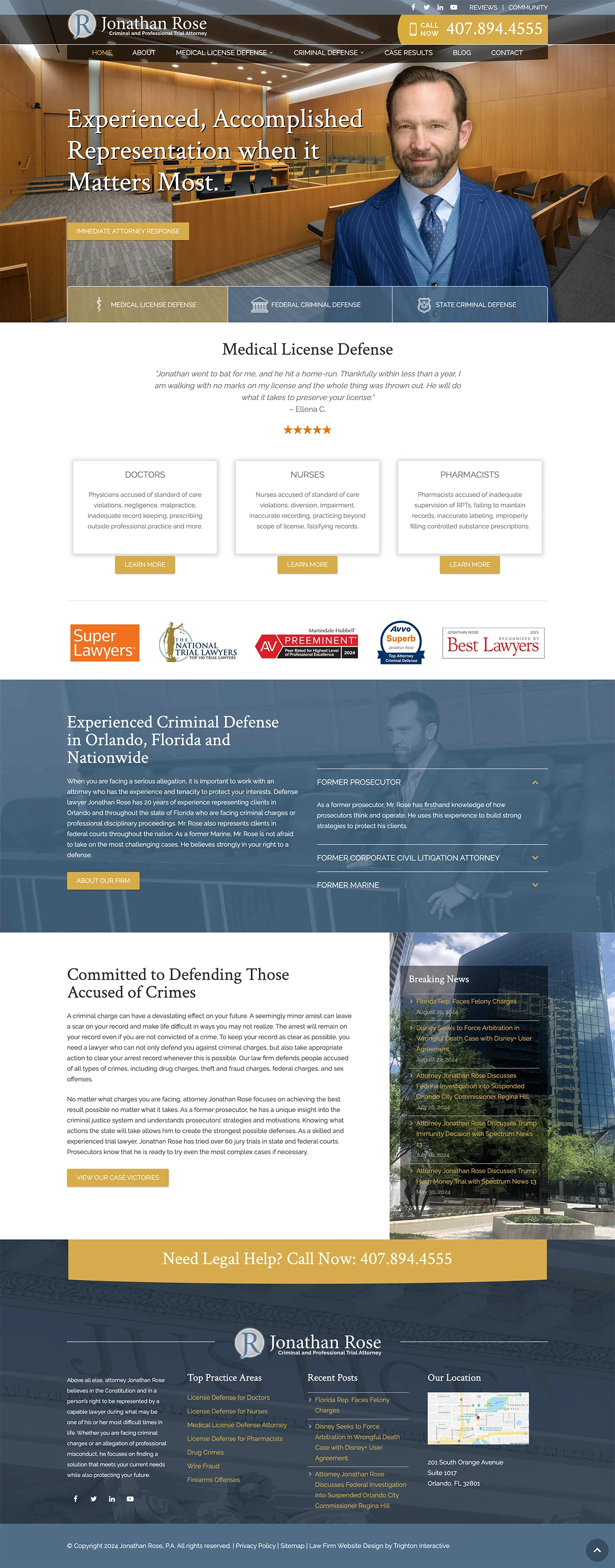 Jonathan Rose is an experienced criminal defense attorney who is committed to defending those accused of all types of state and federal crimes. Most notably, he serves doctors, nurses and pharmacists for medical license defense. After launching his website, an ongoing SEO campaign has yielded excellent results for the high-competition medical license defense keywords and attained the top placements in Google organic.