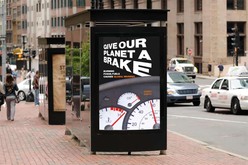Global Warming is a theory, but could likely be an “inconvenient truth.” This public service poster raises awareness on this growing problem. I chose to deliver my message by targeting motorists. By putting the viewer behind the wheel, they can see the corresponding visual metaphors on the dashboard.