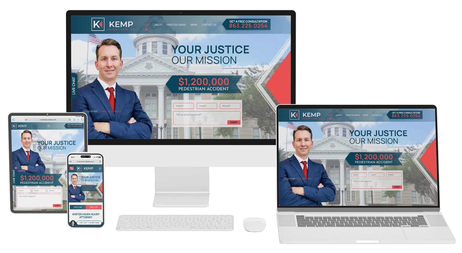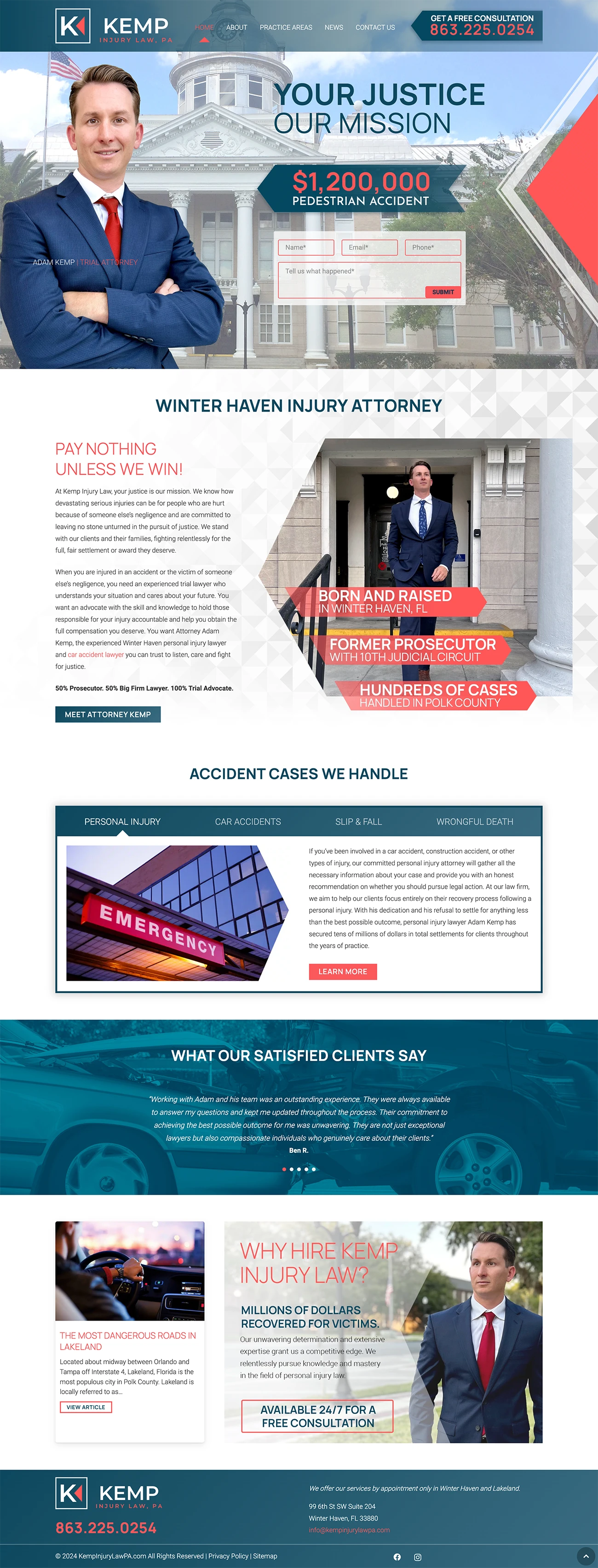 I worked closely with attorney Adam Kemp to learn more about his Winter Haven roots in order to present his brand as a hometown-hero-status. The new responsive website was launched with SEO keyword-rich landing pages within an expedited 4 week development timeline.